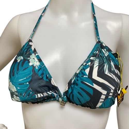 ターコイズグリーン×ボタニカル柄が印象的なこのビキニは、シンプルながらもエッジの効いたデザインが魅力。