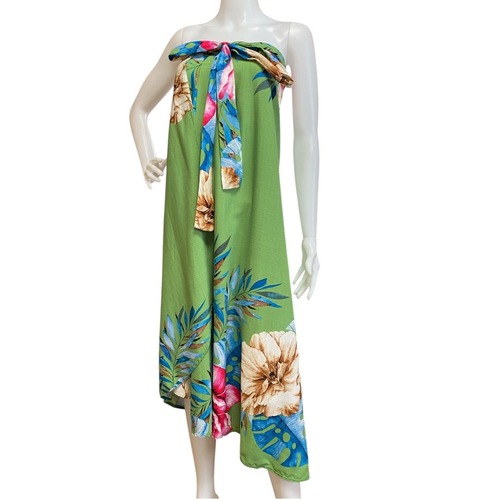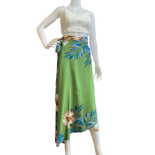 ブラジル直輸入・2WAYロングスカート&パレオ ボタニカル柄グリーン