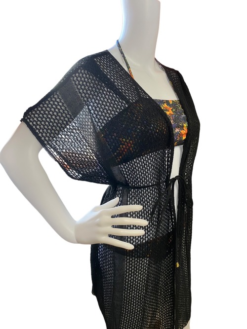 ブラジリアン ビーチカーディガン レースクロシェ風 ブラック