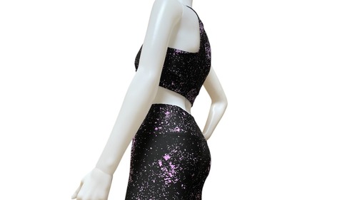 Keylla ブラジリアンレギンスセット ペイント柄 ブラック&紫(トップスV字型)