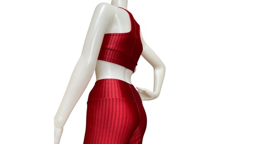 Keylla ブラジリアンレギンスセット 光沢ストライプ レッド(ブラトップV字型)