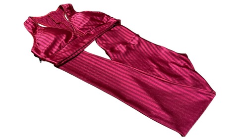 ストライプ柄に光沢の素材、華やかなレッドカラーとエレガントなストライプ柄が女性らしさを引き立てます。