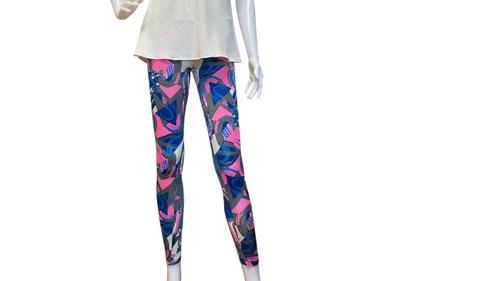 ピンク・ブルー・グレーデザインを散りばめたブラジリアンレギンスは明るく華やかな色合いが特徴のアイテムです。